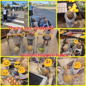 Verder brachten we bezoekjes aan de winkel om boodschappen te doen of plukten we kruiden uit onze eigen moestuin voor lekkere gezonde gerechtjes zoals tomatensoep, pasta, draken pannekoekjes, linzenwafels en fruitprikkers. De kinderen mochten snijden met een kindermes, roeren met de lepel of samen met de juffen mixen met de mixer. En daarna natuurlijk samen het eten ontdekken en ervan smullen!!! Mmmm